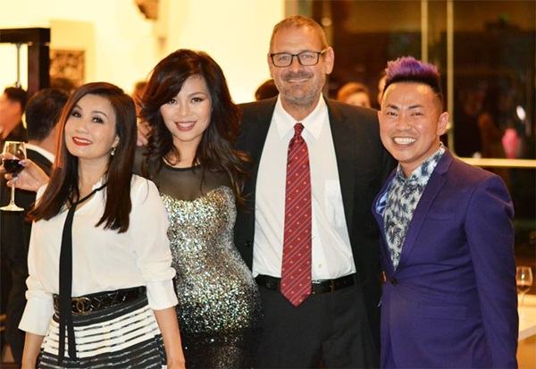 Vợ chồng Ngọc Anh trong một sự kiện tại Mỹ do ca sĩ Nguyễn Hồng Nhung tổ chức. Đây là lần hiếm hoi Ngọc Anh thoải mái công khai hình ảnh bạn đời.