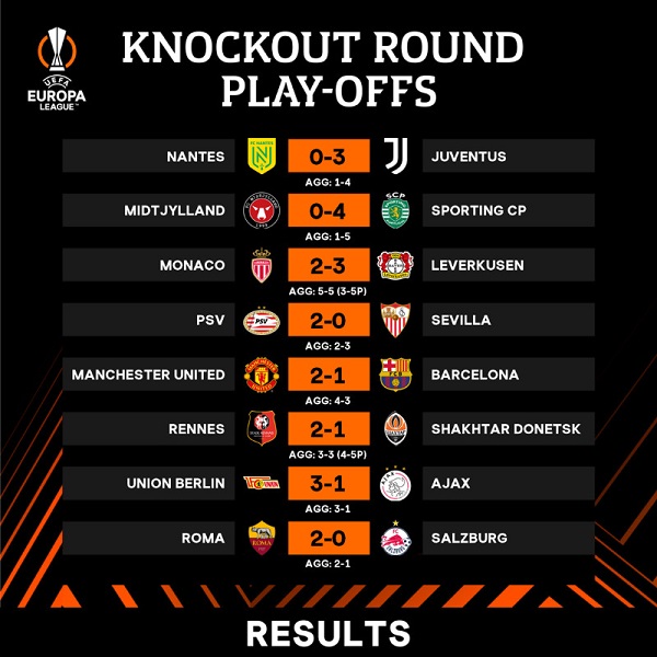 Kết quả các lướt trận Europa League rạng sáng ngày 24/2