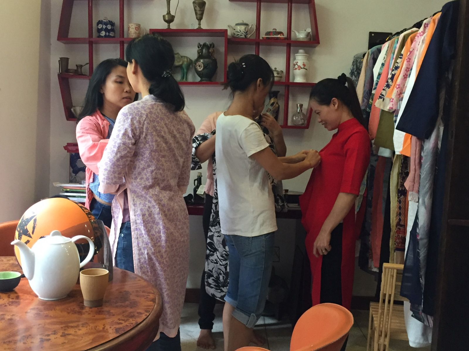 Mới đây, Chương Đặng “rao” trên facebook của mình rằng sẽ tặng mỗi người một bộ áo dài trong 2 ngày. Rất đông người đến trong 2 ngày đó. Những lúc có mặt ở cửa hàng, anh hớn hở vui cười tư vấn cho khách đến nhận áo dài, từ người lớn tuổi cho tới trẻ con ai cũng “Chương ơi, Chương à…”. Có cô lớn tuổi băn khoăn không biết lấy bộ nào, phòng thử đồ thì đông người đợi, anh bèn gợi ý: “Hay là cô cầm mấy bộ này về thử đi, thích bộ nào thì lấy, còn lại ngày mai đem lại cho con”, mà “cô” thì chẳng quen biết gì với “con” đấy nhé. Có cô bé thích hai bộ, hỏi rằng nhận một bộ và mua một bộ được không, anh đồng ý nhưng cô không đủ tiền mặt trong túi và anh lại bảo đem về mai đưa tiền. Cô này với anh trước đó cũng không quen biết nhau. Đó là lý do nhiều người được mặc áo dài Kujean của Chương. Anh làm áo dài để bán và anh thích nhiều người được mặc áo dài nên hay nghĩ ra cách này cách kia để càng nhiều người có cơ hội càng tốt. Mà nói về chuyện nghĩ ra cách này cách kia thì anh thuộc hàng… siêu sao nên rất nhiều người mặc áo dài của anh, cho dù được tặng cũng thấy mình được tôn trọng. Và, với kiểu bán hàng bằng niềm tin của Chương Đặng, dường như chưa nghe anh nói mình mất mát gì.