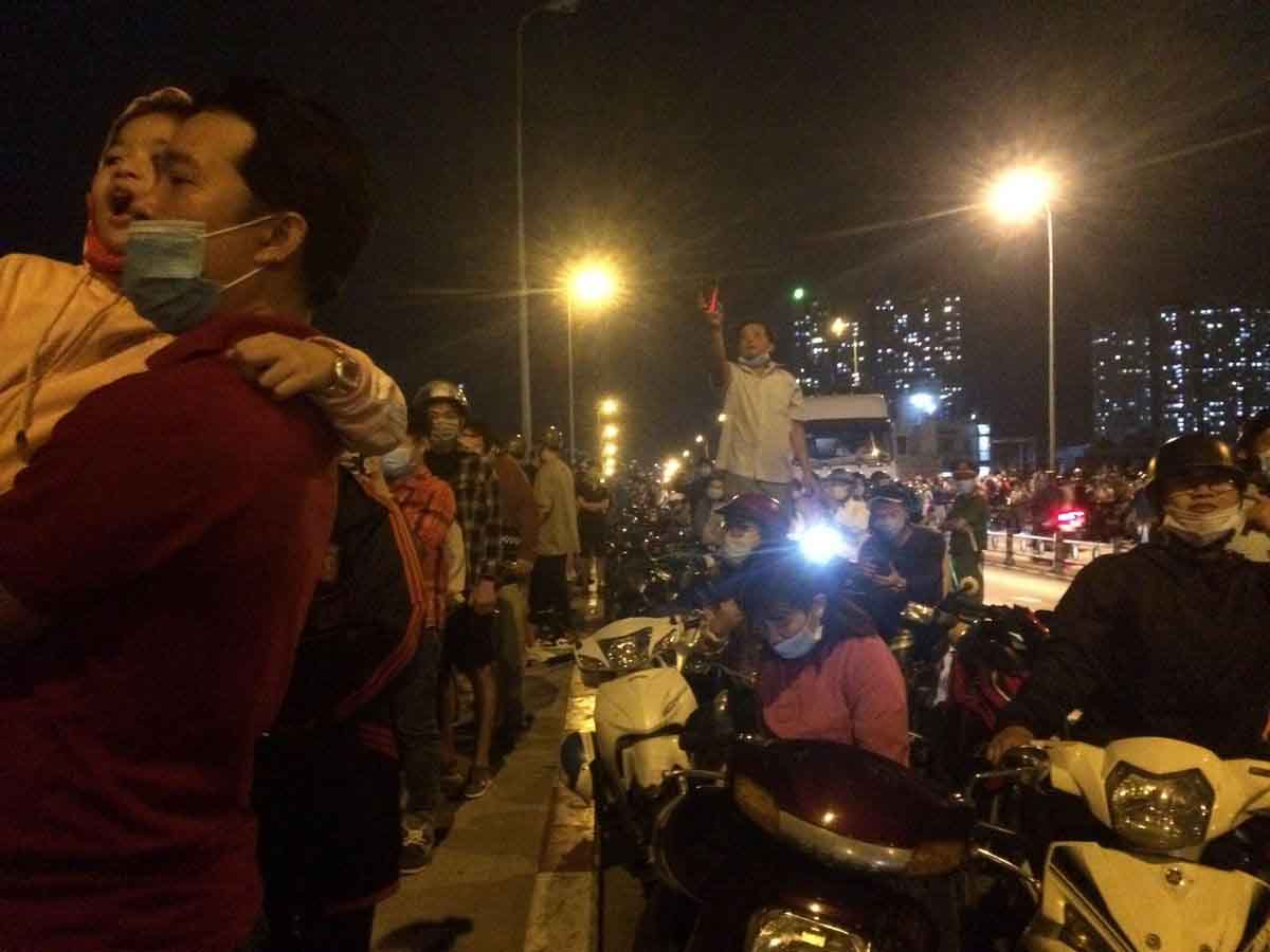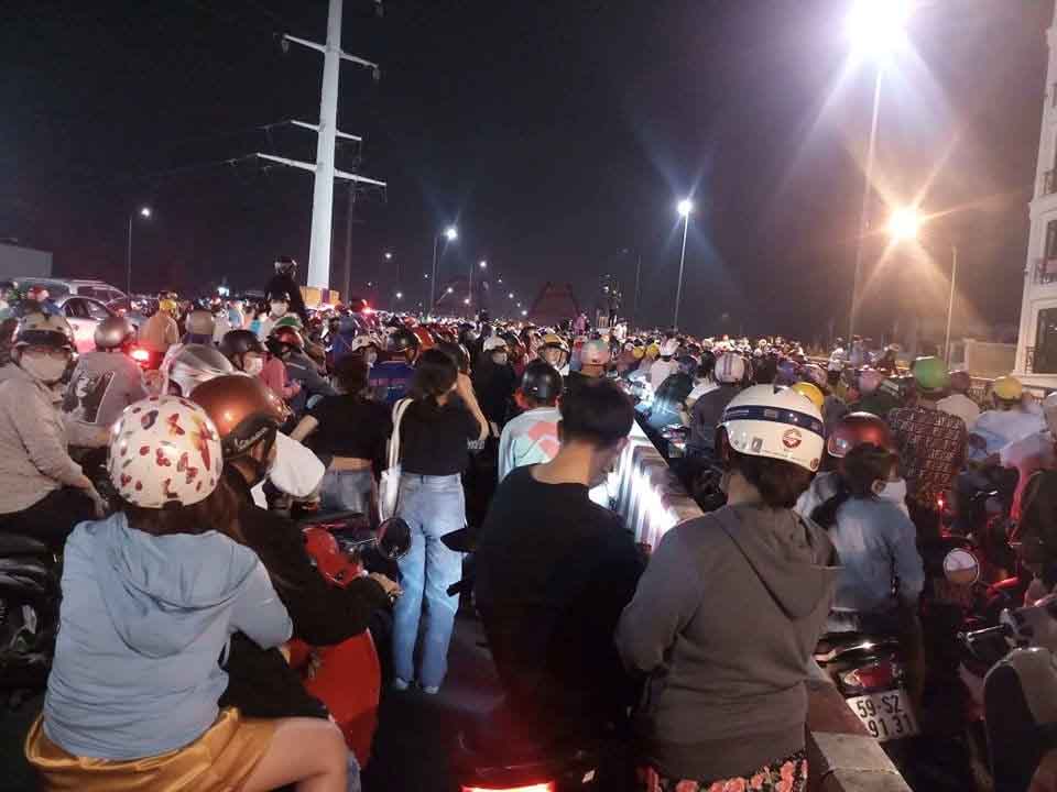Người dân dừng xe trên cầu Bình Lợi (TP.HCM) để theo dõi pháo hoa – Ảnh: Hồ Đông