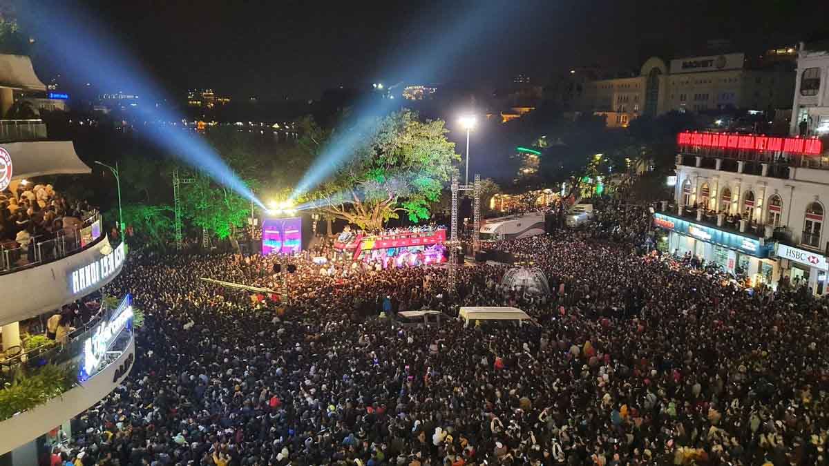 Hàng ngàn người dân tập trung về khu vực Cầu Gỗ chờ xem bắn pháo hoa tầm cao ở Hồ Gươm, Hà Nội – Ảnh: A.T