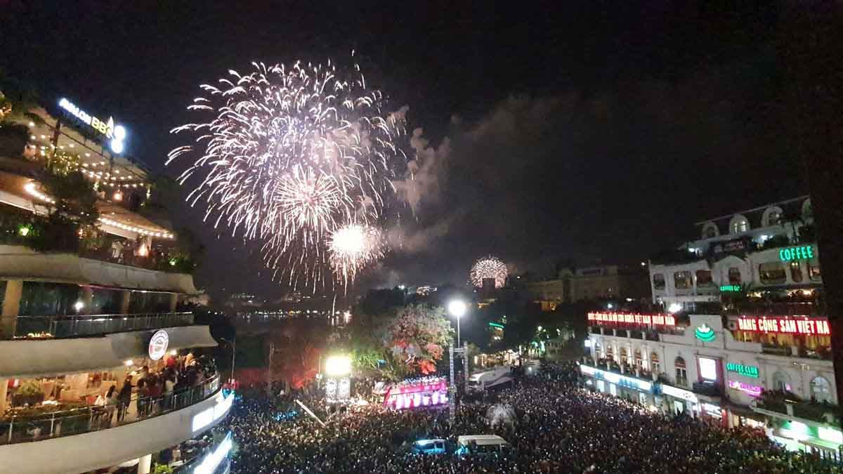 Pháo hoa ở Hồ Gươm – Ảnh: A.T