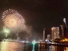 Pháo hoa tỏa sáng cả góc trời ở đường hầm sông Sài Gòn, TPHCM – Ảnh Phan Diệu