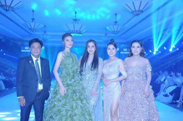 Các thành viên trong bản tổ chức fahion show “Queen & Princess” chụp ảnh cùng các người đẹp. Hoa khôi Nguyễn Như Quỳnh (thứ ba), trái sang.