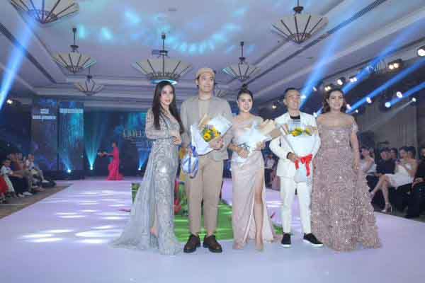 Người đẹp môi trường Nguyễn Thúy Quỳnh (hàng đầu, trái qua) trong Fahion show “Queen & Princess” chào mừng năm mới tối 3.1.2021 tại TP.HCM.
