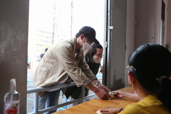 Một người hâm mộ mệt lả vẫn cố gắng xếp hàng chờ tới lượt mua vé