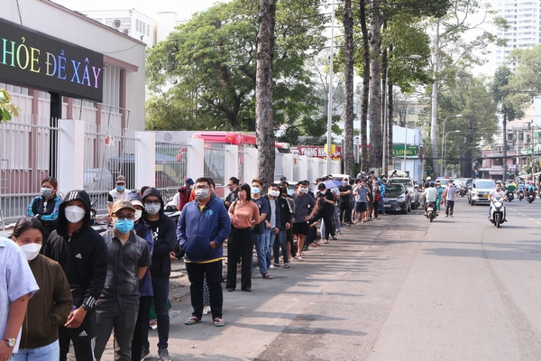 Người hâm mộ xếp hàng chờ mua vé tại sân Thống Nhất