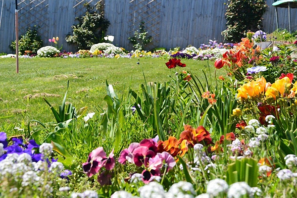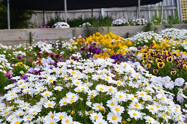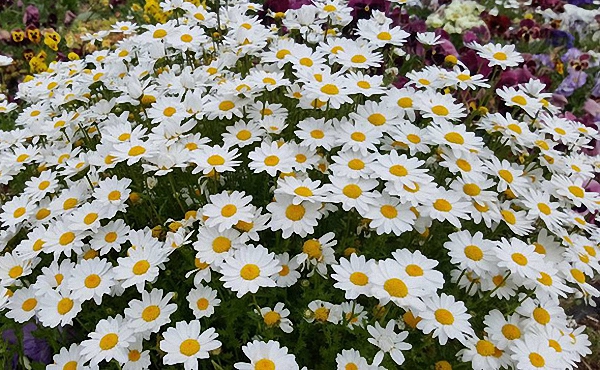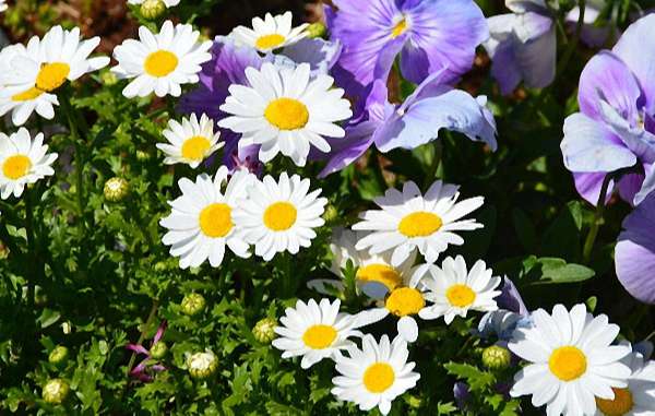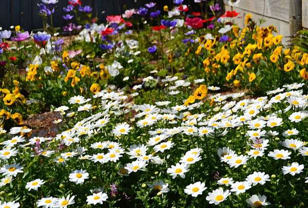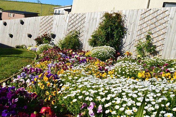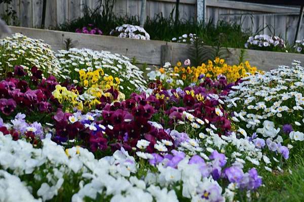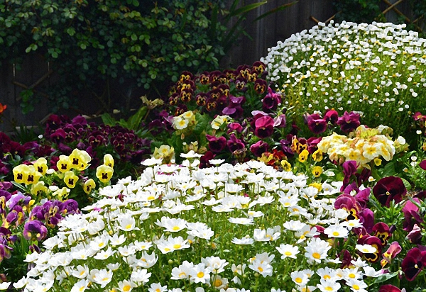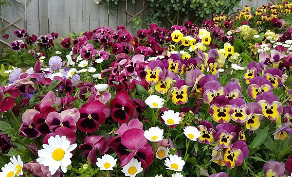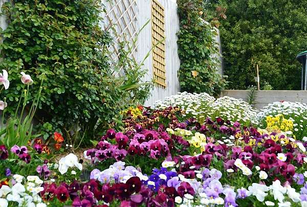 Góc nhỏ đẹp dịu dàng với thảm cúc và pansy.