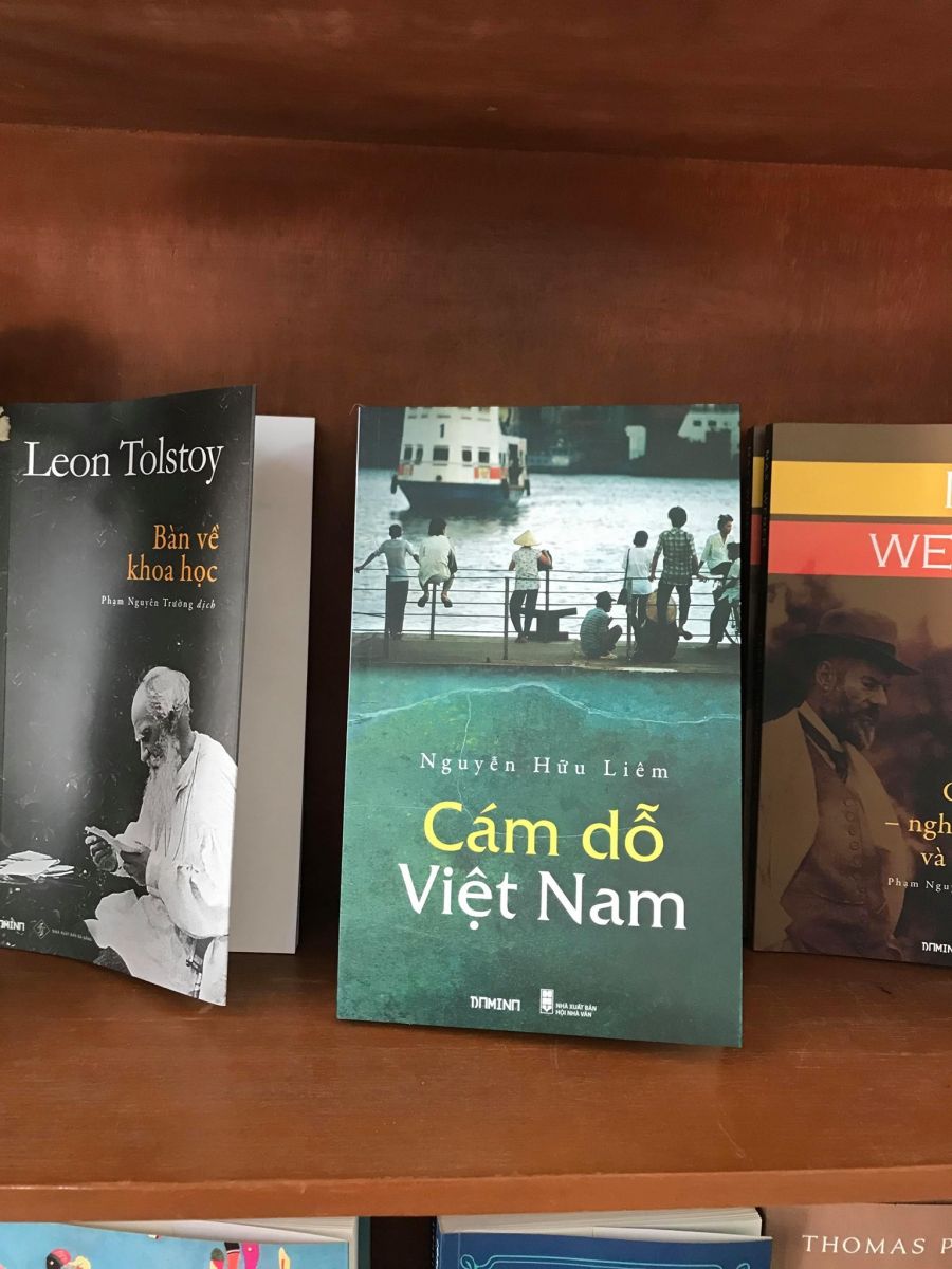Tác phẩm “Cám dỗ Việt Nam” của GSTS Nguyễn Hữu Liêm trên một kệ sách ở Hà Nội