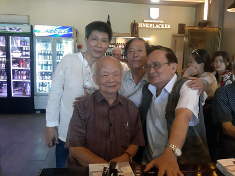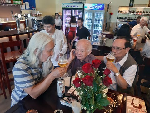 Nâng ly bia mừng tác phẩm sau mười năm ấp ủ: Nhà phê bình Phạm Xuân Nguyên, nhà văn Nguyên Ngọc, nhà thơ Đông Trình.
