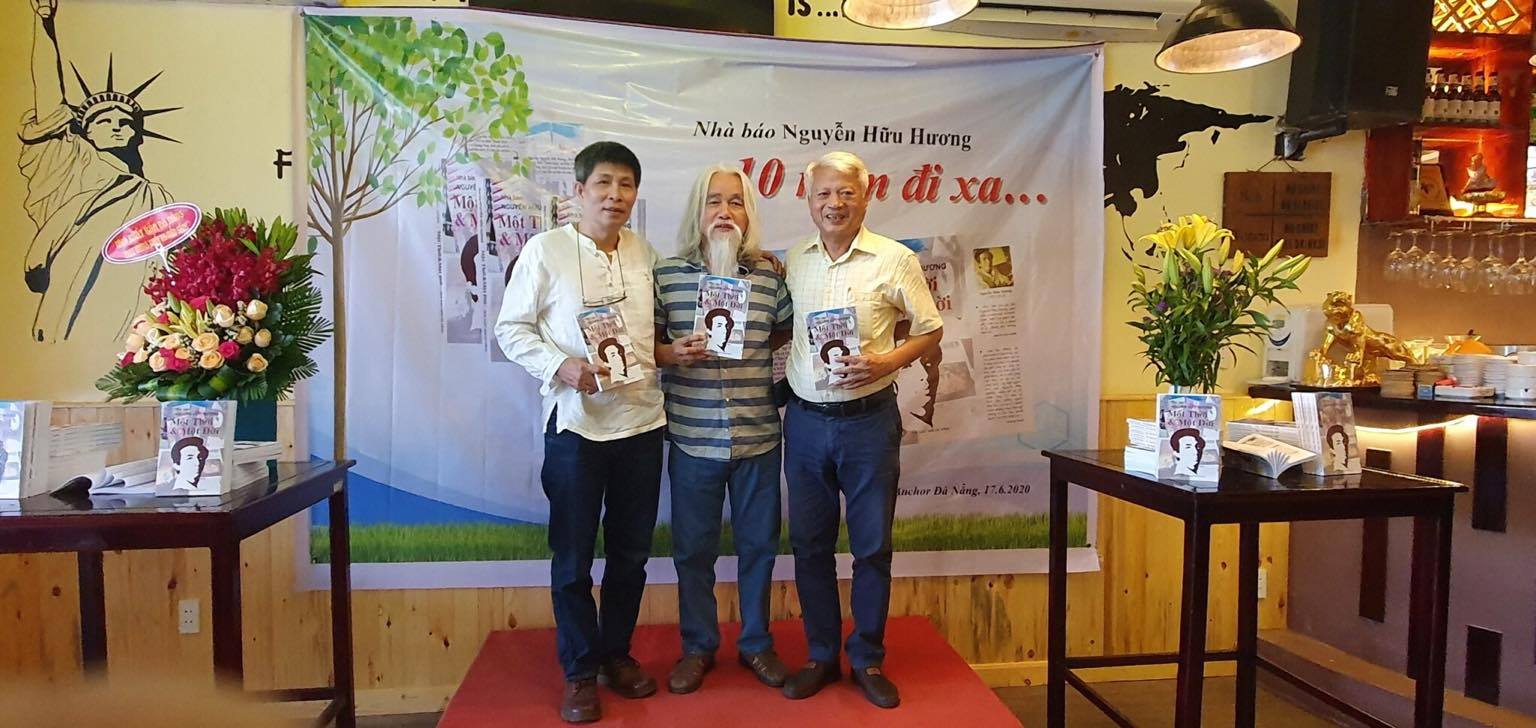 Nhà báo Lê Tấn Hòa (bìa phải), nhà thơ nhà báo Trần Tuấn (trái) hai chủ biên “nặng lòng” của tập sách và nhà phê bình Phạm Xuân Nguyên.