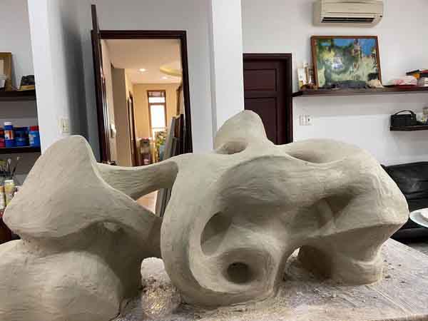 Điêu khắc mới của họa sĩ Đinh Phong vừa hoàn thành chuẩn bị cho triển lãm tại Hà Nội vào cuối năm, 12.2021. (Ảnh: NVCC)