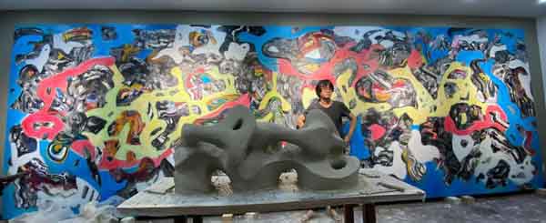 Tranh và điêu khắc mới của họa sĩ Đinh Phong chuẩn bị cho cuộc triển lãm tại Hà Nội cùng nhà điêu khắc Đào Châu Hải dự kiến vào cuối năm nay, 12.2021. (Ảnh: NVCC)