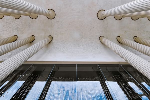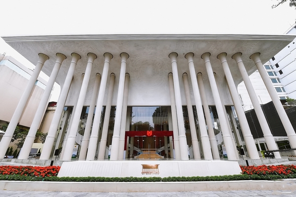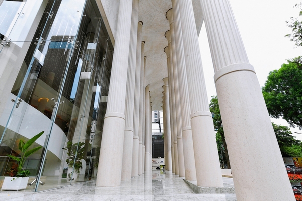 Điểm đặc biệt của nhà hát mà các kiến trúc sư lựa chọn để gây ấn tượng với mọi người khi nhìn từ bên ngoài chính là 52 cột đá, mỗi cột cao 18m được nhập khẩu nguyên khối từ Tây Ban Nha, kèm theo đó là các khối mặt kính, mái vòm bao quanh càng làm tăng thêm tính hiện đại, sang trọng, toát lên dáng dấp châu Âu xưa cho cả công trình.