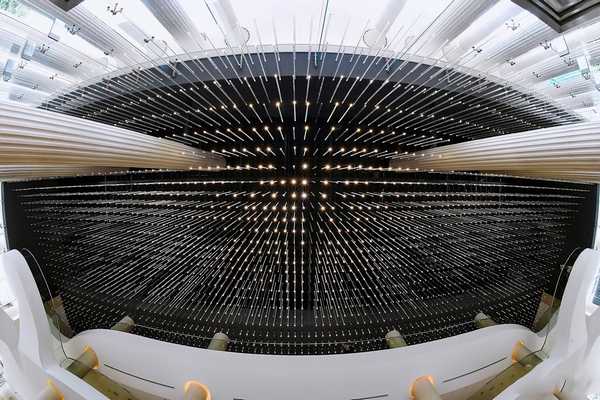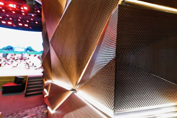 Trần nhà hát được bố trí dàn đèn lộng lẫy lấy cảm hứng từ các vì sao đêm.