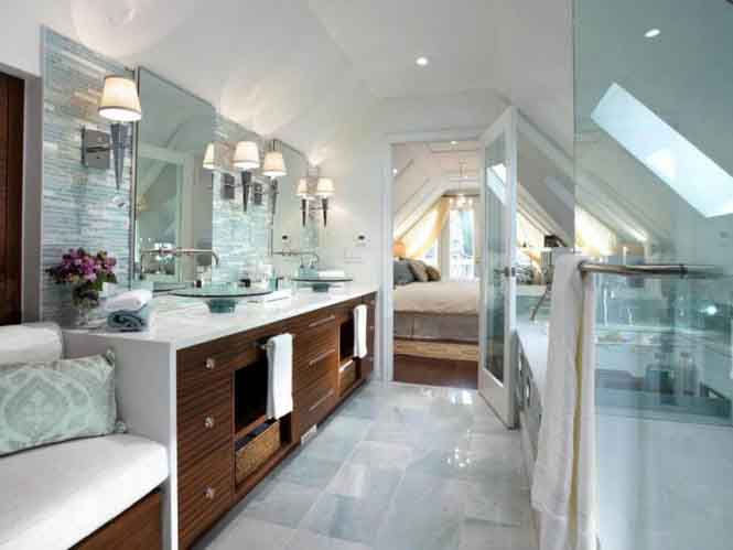 Mái dốc bằng, chuộng ánh sáng và cửa kính, bên trong thoáng và mát là đặc trưng của kiểu thiết kế nhà này.