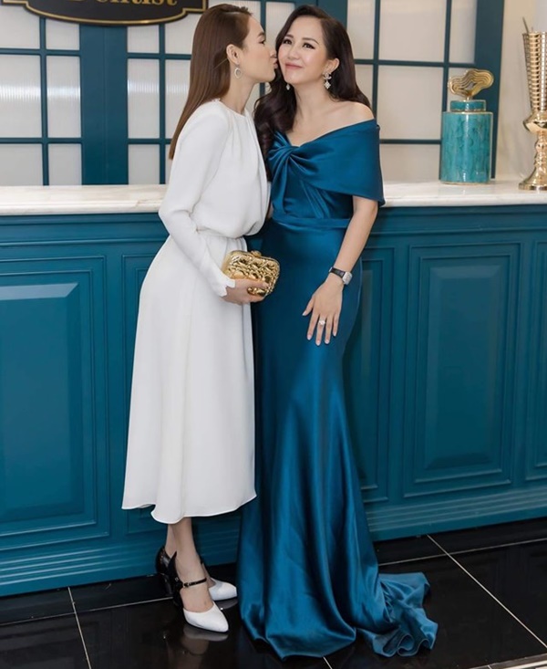 Cô gần gũi hôn má đàn chị. Dù là ngôi sao hạng A làng giải trí, Nhã Phương luôn khéo léo cư xử và tạo thiện cảm với người đối diện.