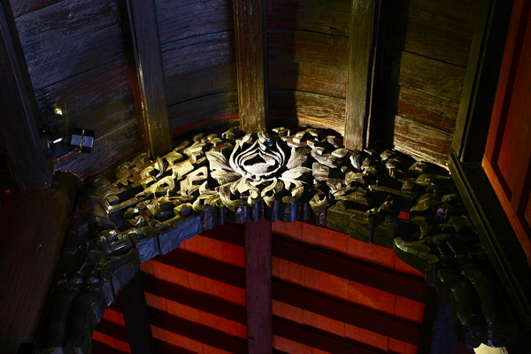 Nhịp thứ 2, phía trước gian thờ là một không gian đẹp, hệ kết cấu được phô bày đầy tính thẩm mỹ.