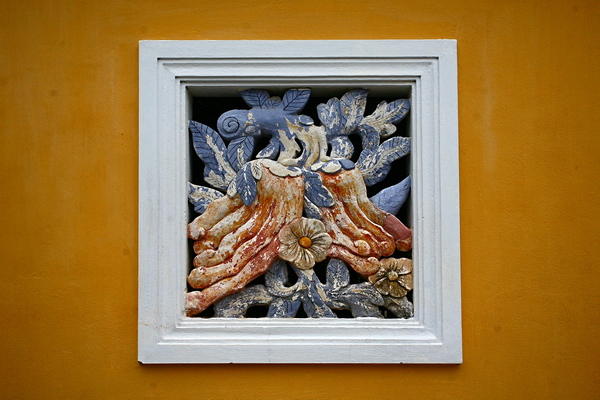 Cửa sổ ở chái nhà hình phật thủ, gợi nhắc sự đông đúc phồn thịnh theo quan niệm xưa.