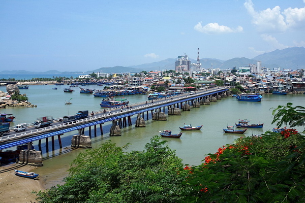 Cầu Xóm Bóng ở phía Bắc thành phố, đây là nơi dòng sông Cái đổ ra biển. Dưới chân cầu là cảng cá Cù Lao.