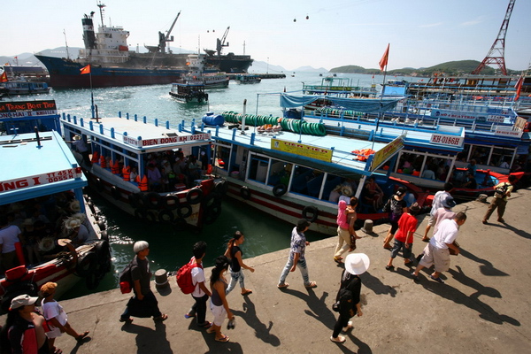 Bến tàu du lịch Cầu Đá ở cuối đường Trần Phú phía Nam thành phố. Những chuyến tàu tham quan vịnh Nha Trang xuất phát từ nơi đây.