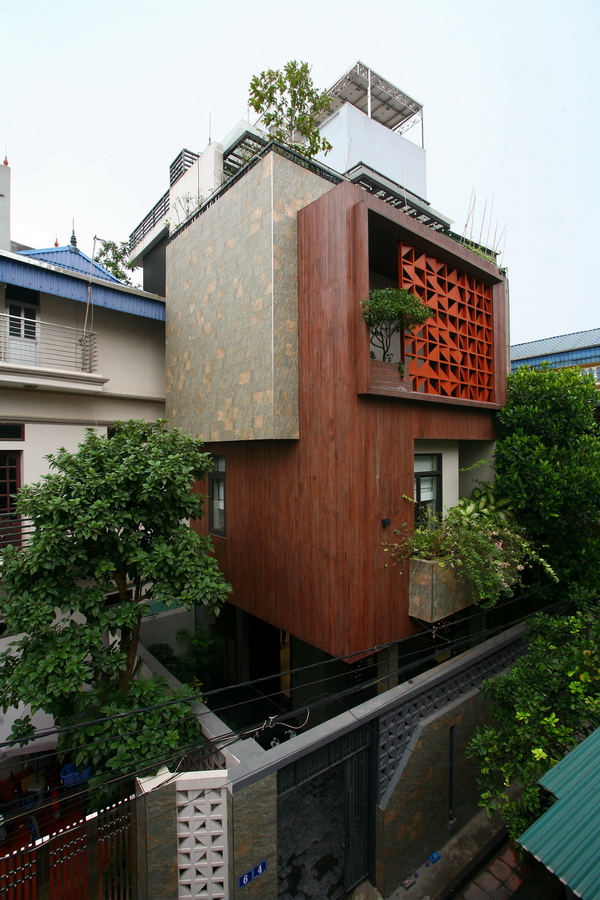 Công trình nằm trong ngõ nhỏ, nổi bật với hình thức kiến trúc hiện đại.