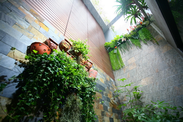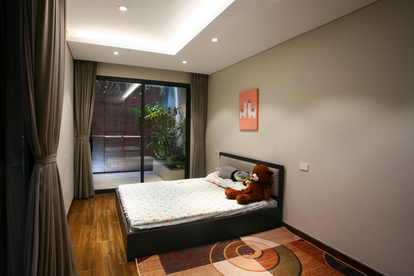 Khoảng xanh dưới giếng trời ở phòng ngủ master.