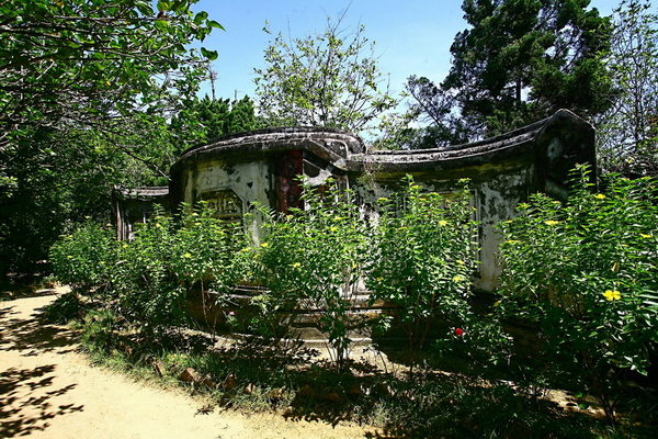 Cổng vào với kiến trúc cổ kính, ẩn dưới cây xanh, có những hoa văn và câu đối khảm bằng sành sứ. Trên cổng là 2 chữ Hán “An Hiên”.