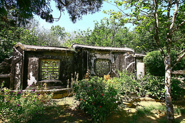 Từ lối vào nhìn ra, phía ngoài cổng là dòng sông Hương