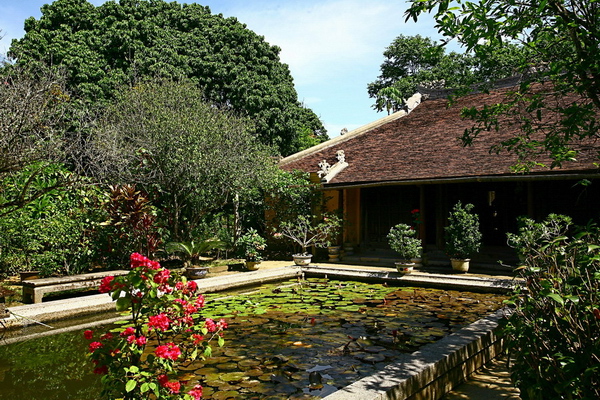 Phía trước và xung quanh ngôi nhà là sân vườn với rất nhiều loại cây bốn mùa xanh tươi, đơm hoa kết trái. Nhiều loại cây được trồng rất lâu năm, như hàng mơ ở lối vào được trồng từ những năm 1940. Nhiều loại cây ăn quả, nhiều giống cây quý hiếm khắp 3 miền cũng được đưa về đây tụ hội. Có thể kể tới những măng cụt, sầu riêng, thanh long… của miền nam; mơ, hồng, vài thiều… của miền bắc; thanh trà, dâu, vả… của miền trung và Huế.