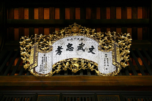 Bức hoành phi đề 4 chữ “Văn Võ Trung Hiếu” do vua Bảo Đại ban năm 1937.