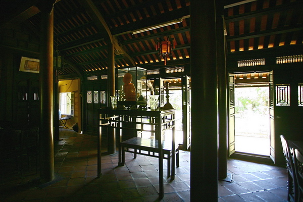 Nội thất gian giữa nhà rường, đây là gian thờ phụng.