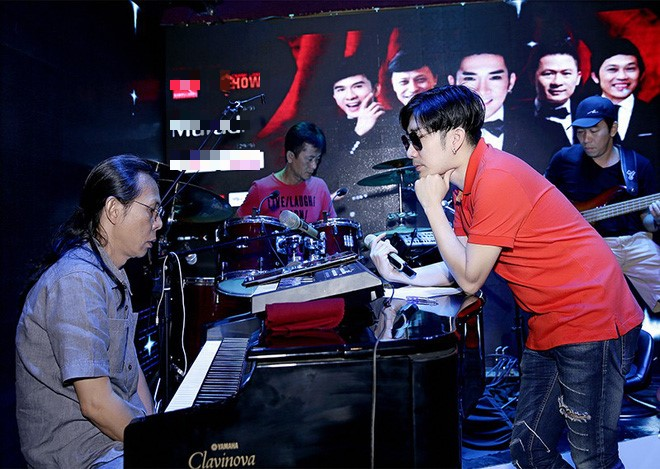 Nhạc sĩ, Pianist Nguyễn Quang (trái) chỉ đạo trong liveshow ca sĩ Quang Hà