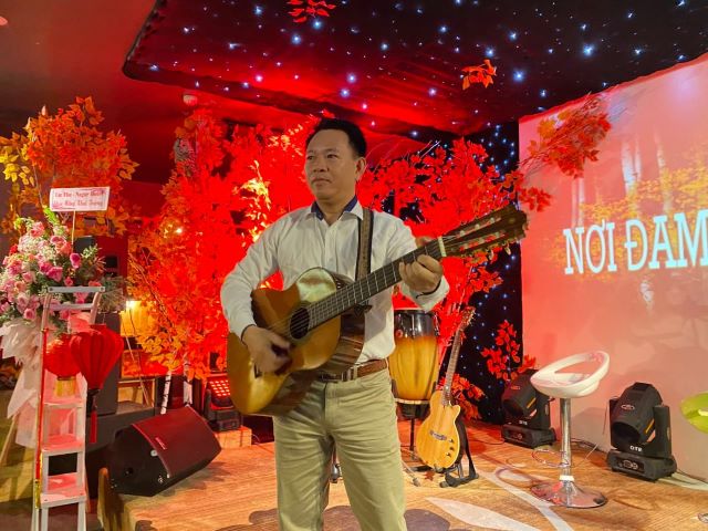 Nhạc sĩ, Doanh nhân Lê Xuân Thơm thường viết và chơi nhạc bằng cây guitar quen thuộc từ những ngày còn trẻ.