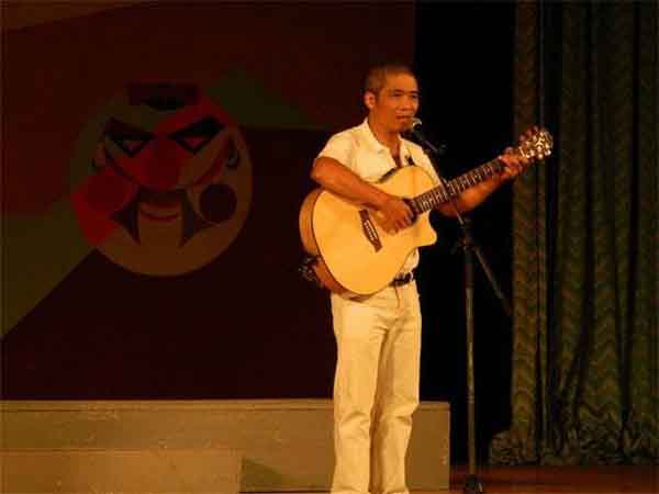 Nhạc sĩ Trương Quý Hải biểu diễn trên sân khấu Nhà hát Trương Vương Đà Nẵng.