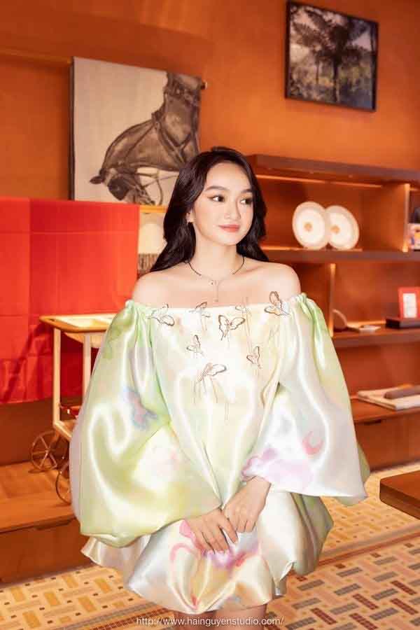 Thiết kế trễ vai giúp Kaity Nguyễn khoe trọn bờ vai gợi cảm.