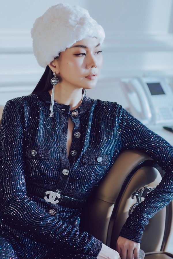 Nữ người mẫu diện mẫu áo khoác lông của Chanel, kết hợp thêm những phụ kiện như túi xách, hoa tai, kẹp tóc… giúp Thanh Hằng trông như một quý cô sang chảnh và sành điệu vừa bước vào tuổi đôi mươi.