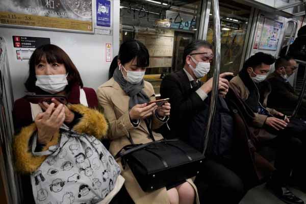 Người dân Nhật Bản đeo khẩu trang trên một chuyến tàu ở Tokyo