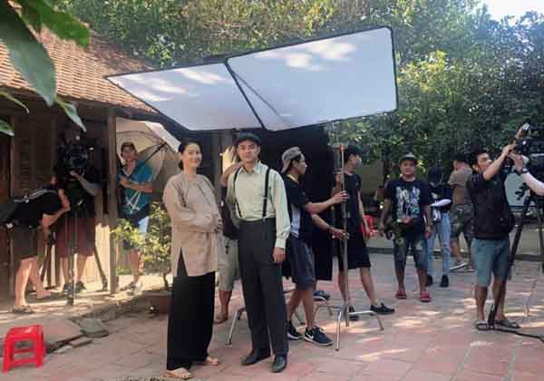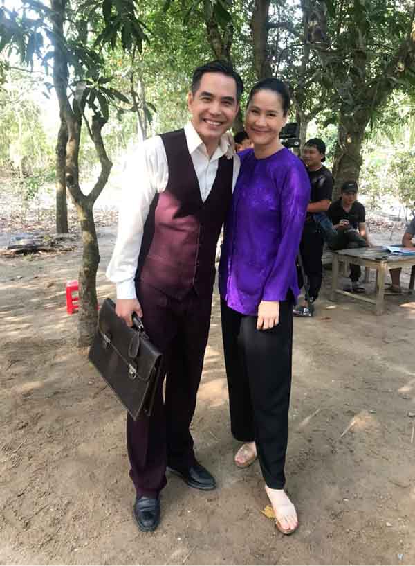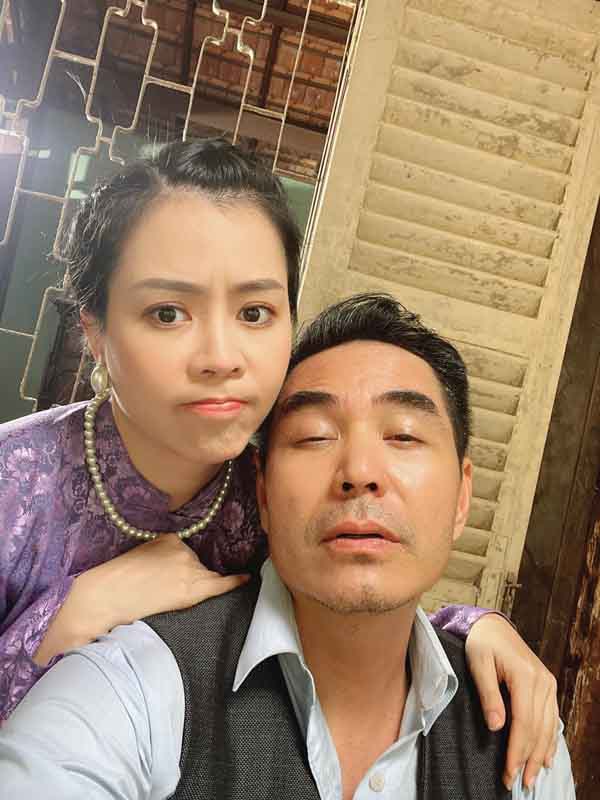 Tranh thủ lúc đoàn đang set bối cảnh quay, Trung Dũng – Thân Thúy Hà tranh thủ chụp ảnh.