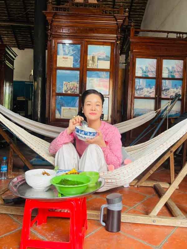 Nhật Kim Anh nghỉ ngơi ăn trưa nhưng vẫn không quên nhí nhố.