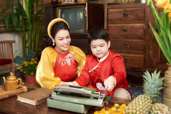 Mới đây, trên trang cá nhân, Nhật Kim Anh chia sẻ khoảnh khắc diện áo dài Tết bên con trai cưng. Nữ ca sĩ không quên đính kèm dòng trạng thái: “Mùng 2 cùng con trai yêu”.