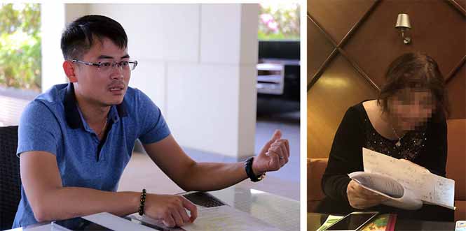 Ông Hồ Xuân Văn (trái) và bà C. kể lại việc mua tiền ảo iFan