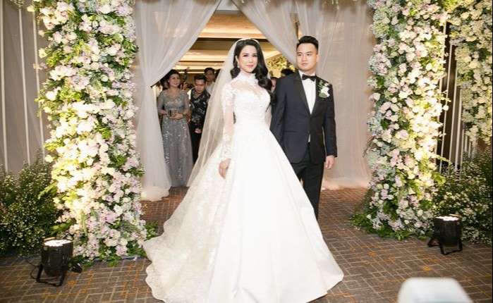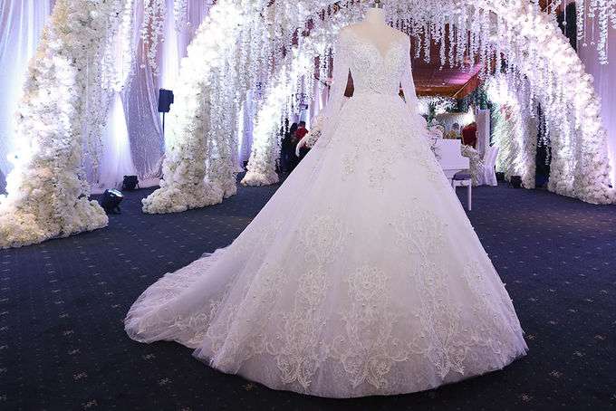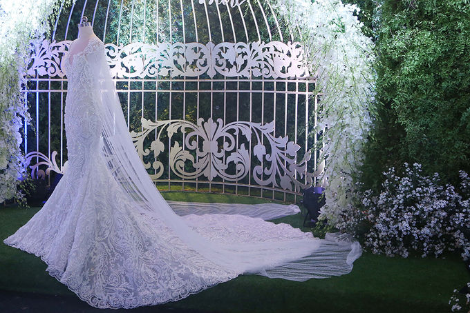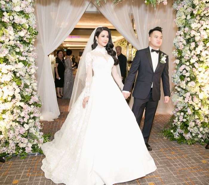Khi làm lễ chính thức, Diệp Lâm Anh đã lựa chọn bộ váy được NTK Lê Thanh Hòa làm riêng cho. Mẫu váy chỉ chính thức lộ diện vào ngày cưới của Diệp Lâm Anh.