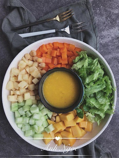Trông có vẻ cầu kì nhưng chị Ngọc Anh nói rằng chỉ cần một ít thời gian là chuẩn bị xong phần ăn đẹp mắt này