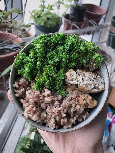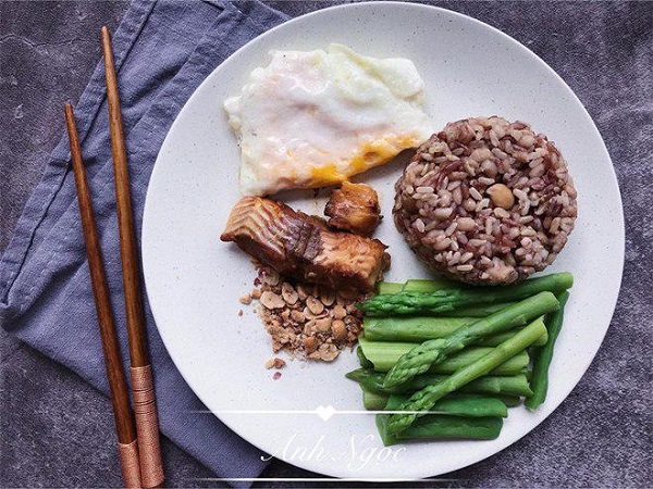 “Không phải gầy được rồi thì lại ăn uống thoải mái không kiểm soát. Vì vậy mình đã chọn cách giảm cân này. Tập luyện mỗi ngày và có một chế độ ăn hợp lý. Mình không ăn gạo tẻ nữa, ăn xen kẽ cơm gạo lứt, khoai lang, bánh mỳ nguyên cám. Nhiều người nói cơm gạo lứt khó ăn, mình thì thấy rất ngon. Nấu cơm gạo lứt cùng một số loại hạt như đậu gà, đậu lăng, lúa mạch, quinoa… và thêm một chút gia vị vào nồi cơm, ăn sẽ ngon hơn nhiều”. (Chị Ngọc Anh chia sẻ)