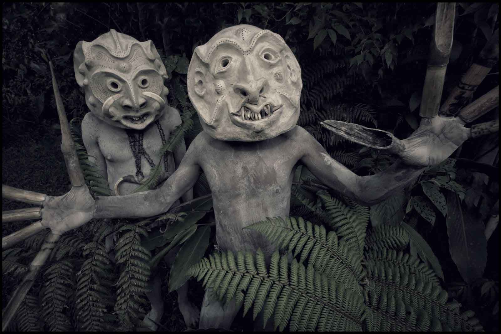 Một số mặt nạ có tạo hình dễ nhìn, nhưng phần lớn xuất hiện nơi bộ sưu tập ảnh độc đáo của Rainier là những mặt nạ dị thường, thậm chí gây kinh sợ — loại mặt nạ biểu trưng cho quỷ dữ, quái vật tàn ác trong truyền thuyết.