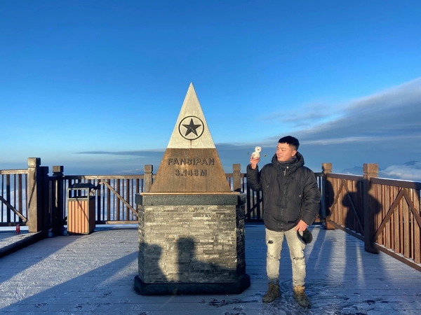 Cuối tháng 12.2022, mưa tuyết đã rơi dày, bao phủ cả một vùng không gian rộng lớn trên đỉnh Fansipan, khiến du khách vô cùng thích thú