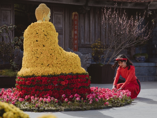 Tượng Phật kết bằng hoa tại Sun World Fansipan Legend