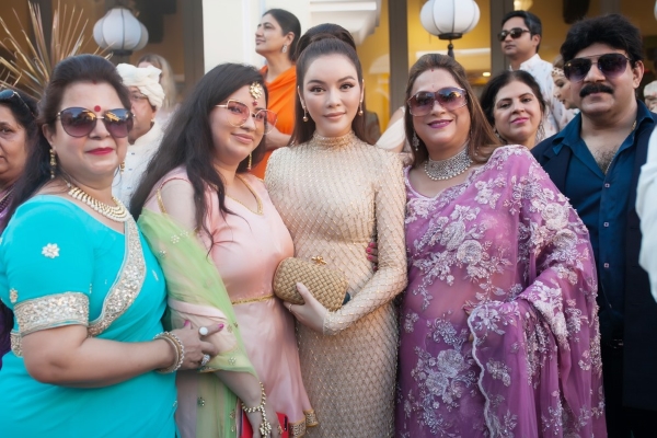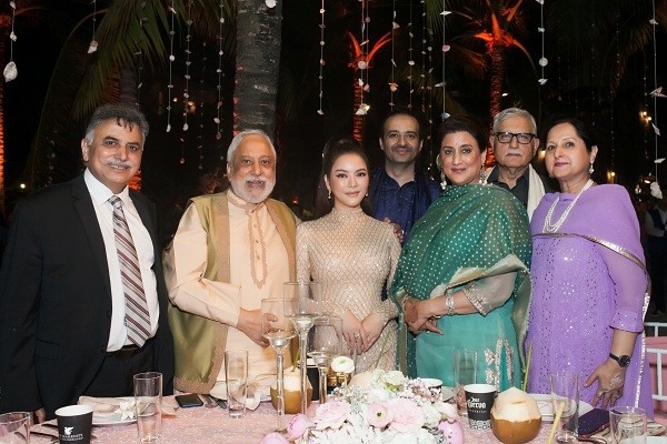 Cô dâu và chú rể đã thuê 2 máy bay để đưa đón 700 khách đến Việt Nam dự đám cưới. Ngoài gia đình đại sứ Việt Nam tại Ấn Độ Phạm Sanh Châu, diễn viên, cựu đại sứ du lịch Lý Nhã Kỳ là sao Việt duy nhất được mời dự tiệc cưới xa hoa này. Người đẹp nhận được sự đón tiếp nồng hậu từ đại gia đình tỷ phú Ấn Độ.