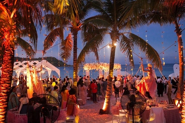 Từng bữa tiệc có chủ đề, màu sắc và trang phục khác nhau. Khách mời được thưởng thức tiệc buffet với hàng trăm món, bao gồm ẩm thực Ấn Độ, châu Âu, Việt Nam, Nhật Bản. Kinh phí tổ chức đám cưới này được giữ bí mật, tuy nhiên, nhiều chuyên gia ước đoán phải tốn nhiều triệu USD.